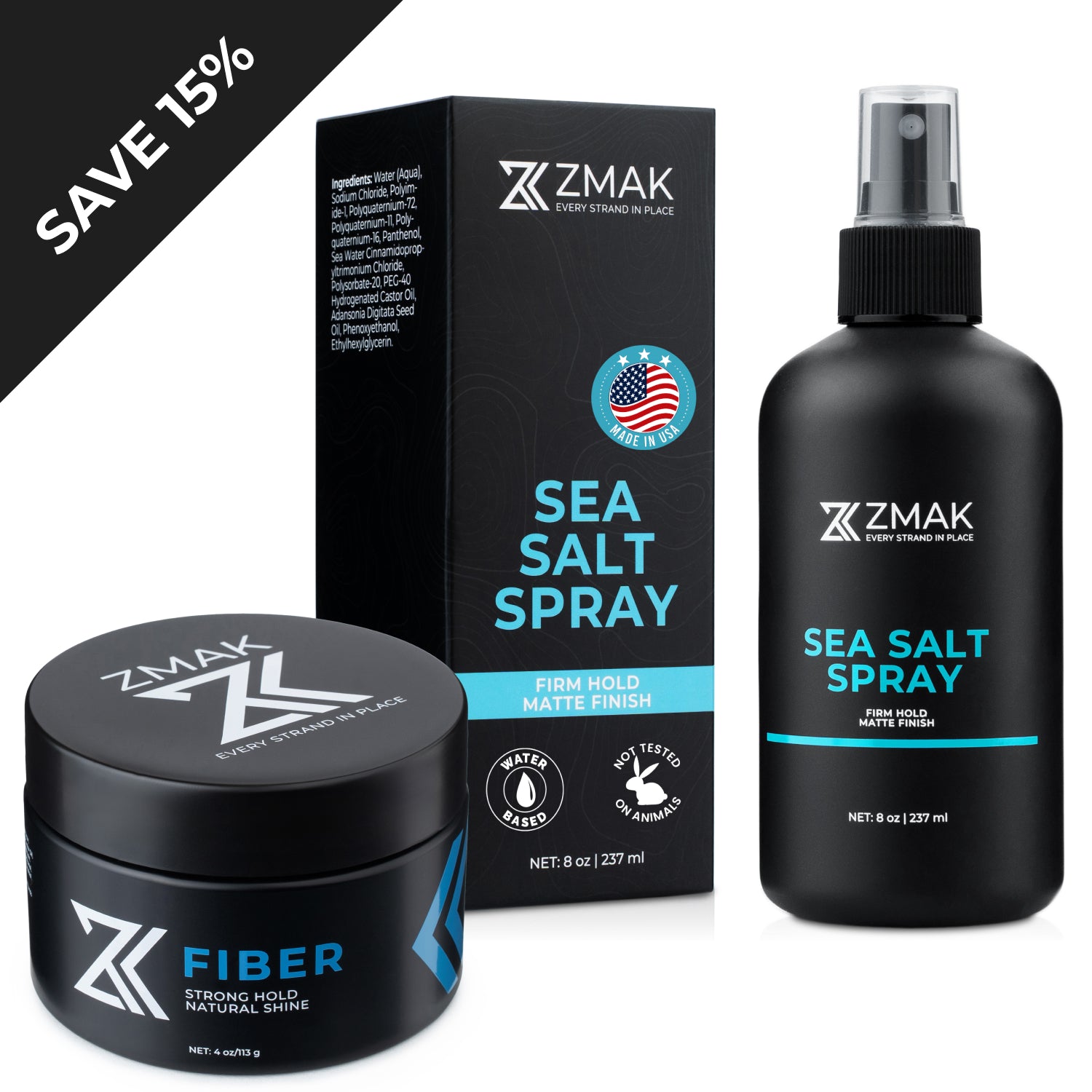Texture first, definition second. Sea Salt Spray builds volume and grip, then Fiber shapes and holds your style with a natural-looking finish.